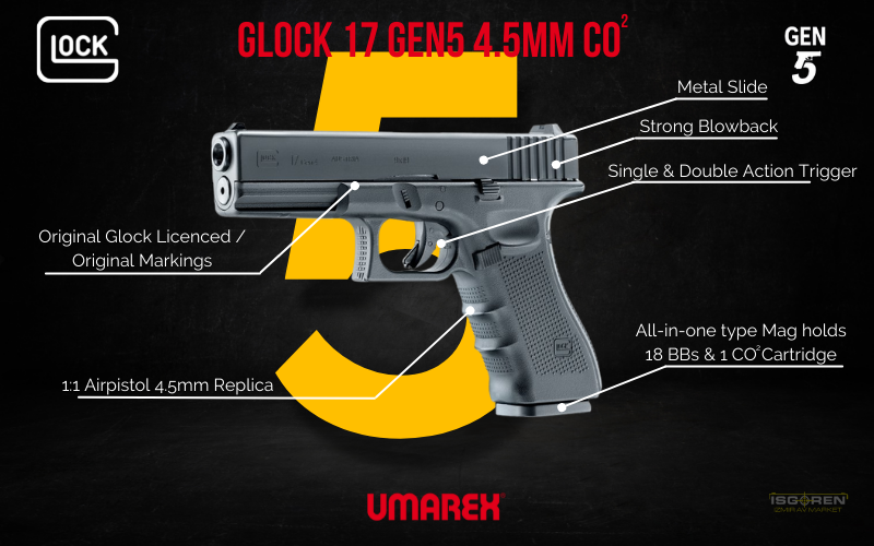 Umarex Lisanslı GLOCK 17 Gen5 4.5mm Havalı Tabanca